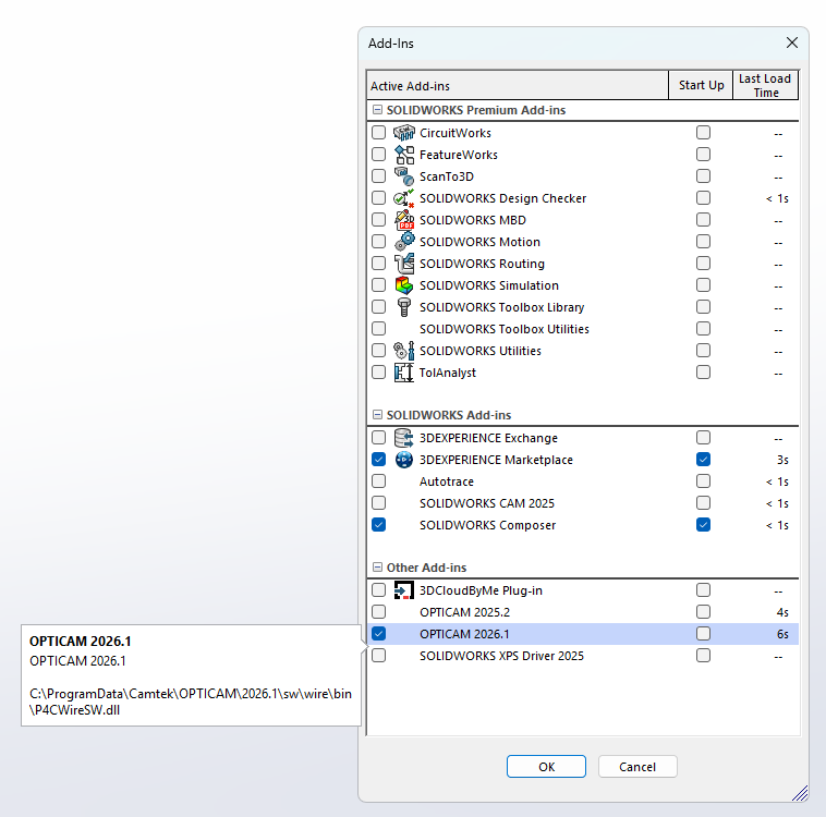 9) After completion, you should be able to start SOLIDWORKS and Opticam will be available in your Add-ins.