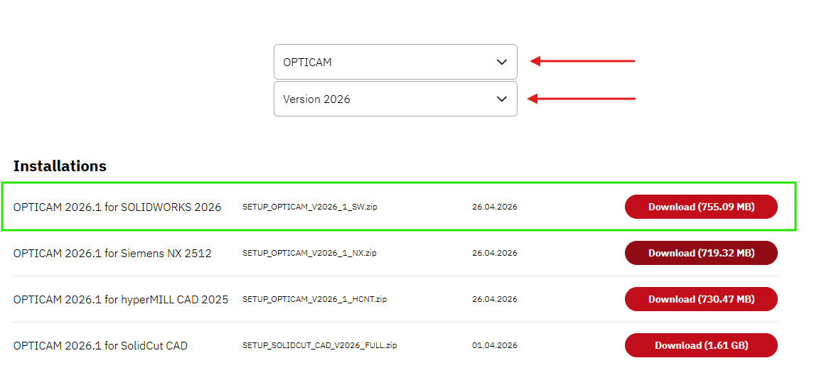 NOTES: Opticam for Solidworks is compatible with SOLIDWORKS 3 versions older than the Opticam for SOLIDWORKS version downloaded. Opticam for SW 2026 works in SW 2026-2024